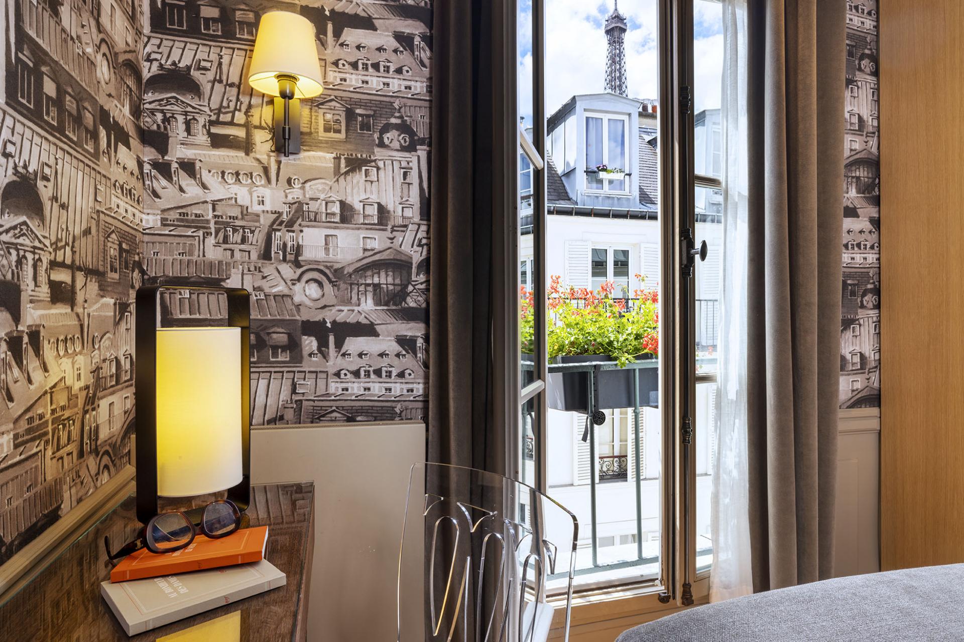Más discreto, desde su habitación, la Torre Eiffel le mostrará la punta de su nariz.